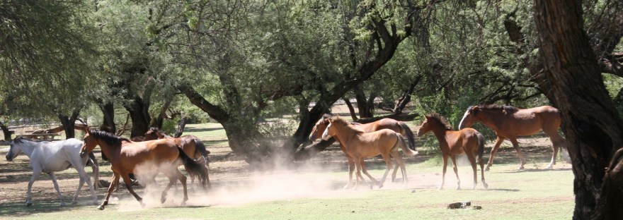 There they were, a small herd with a couple of young additions, grazing near the river. I leapt out of the car, camera at the ready. Minutes later they cantered down into the Salt River, with me running after them!